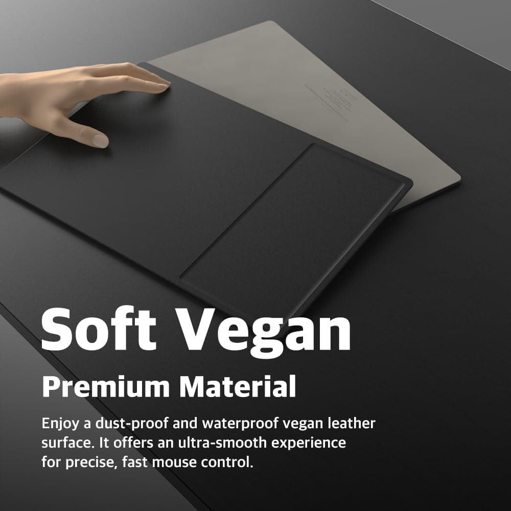 POUT – H3 PRO Dual Qi Wireless Charging Mouse Pad Mat – Dual Fast Wireless Chargers – for MacBook, Laptop & Desk – Charges iPhone, Airpods, Samsung Galaxy & More (Cold Black)